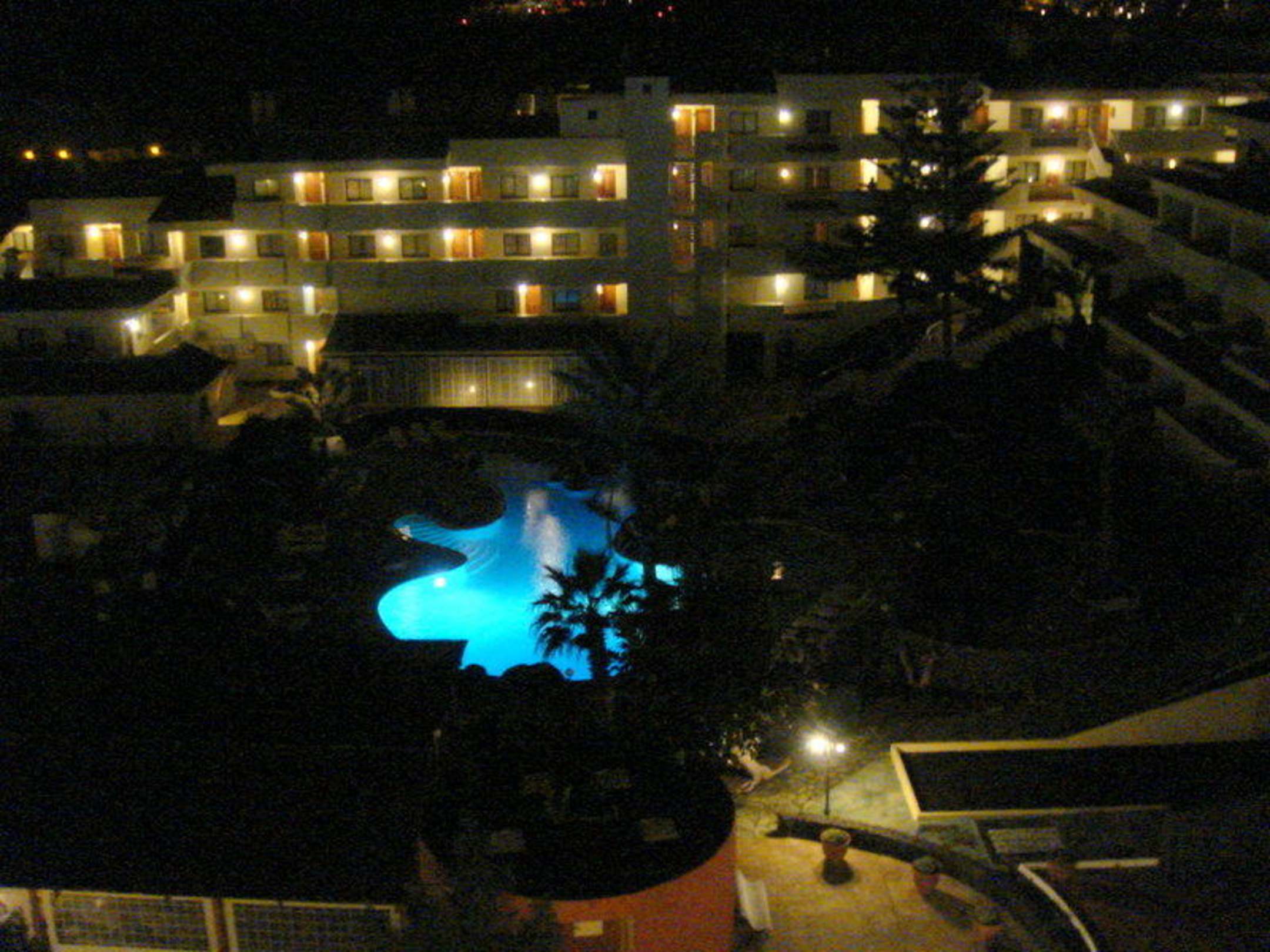 Blick auf die Poollandschaft bei Nacht