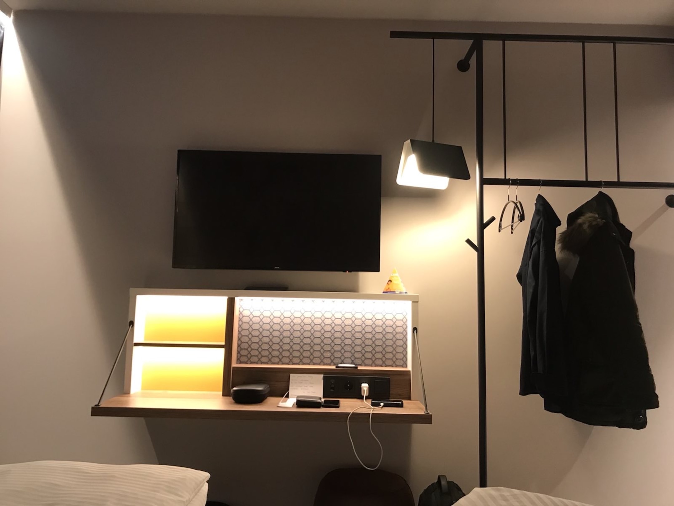 Schreibtisch mit TV vis-a-vis vom Bett