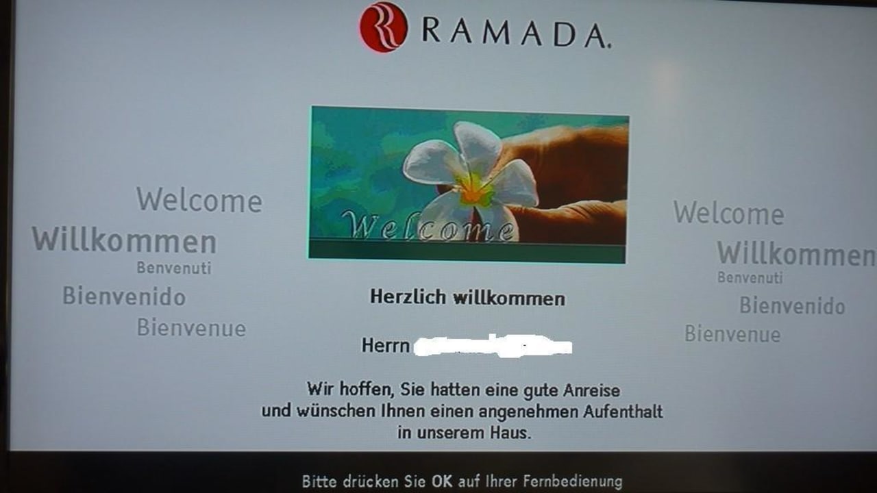 TV mit Begrüßungstext