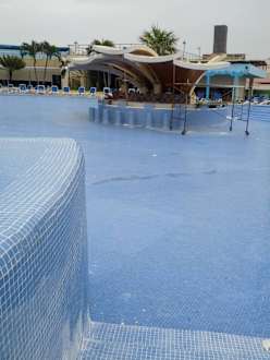 Pool ohne Wasser mit Baustelle