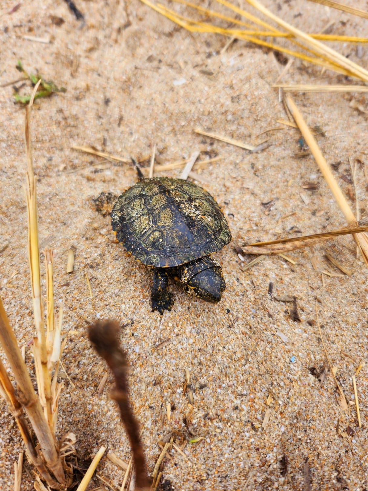 StrandSchildkröte begegnete uns auf dem Weg zum Strand, im Schiff ist ein Kleiner Tümpel wo sie leben.