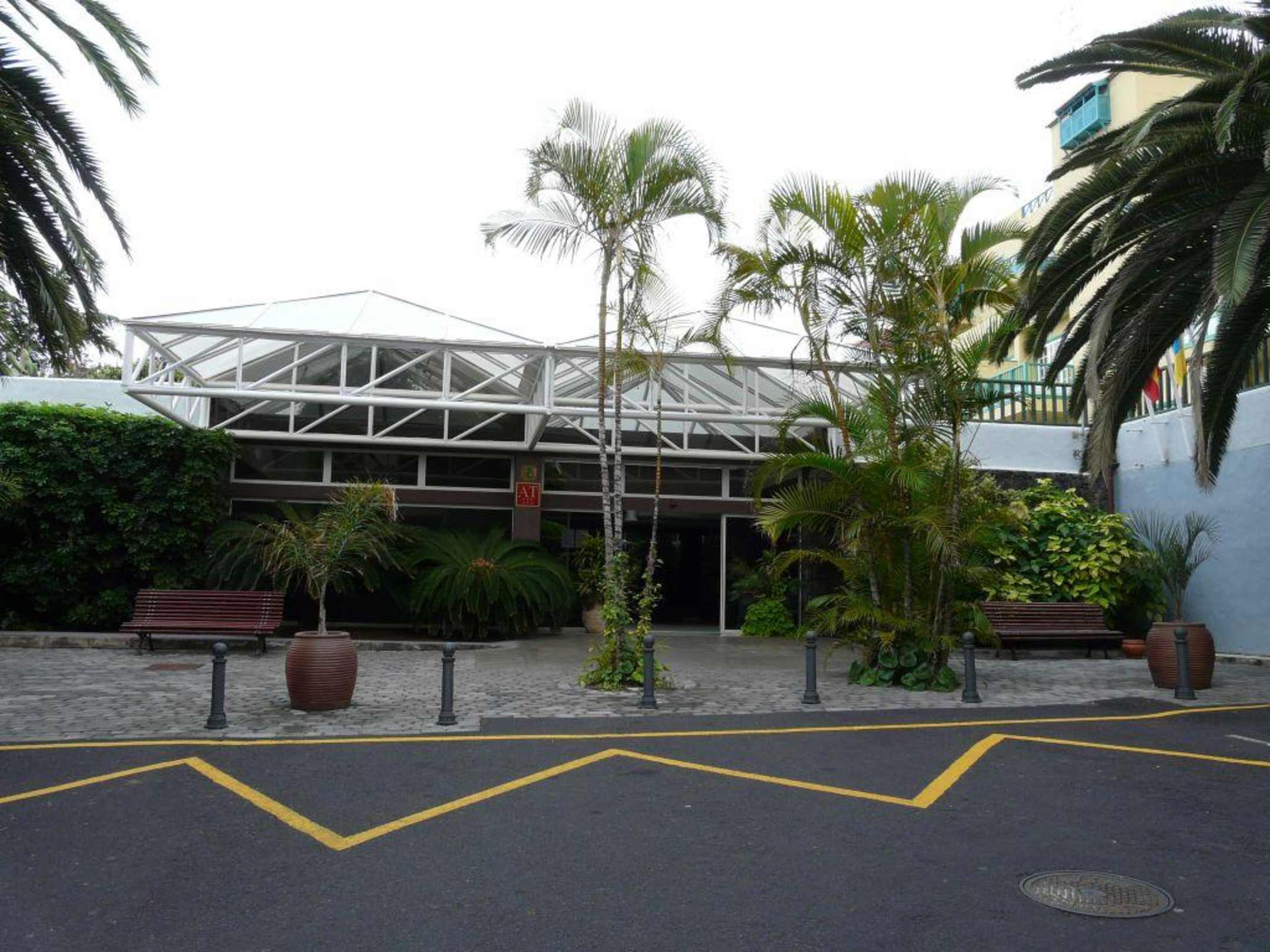Hier sieht man den Haupteingang der Anlage. Ausnahmsweise stehen mal keine Mietwagen auf den Parkverbotsstreifen direkt vor dem Eingang...