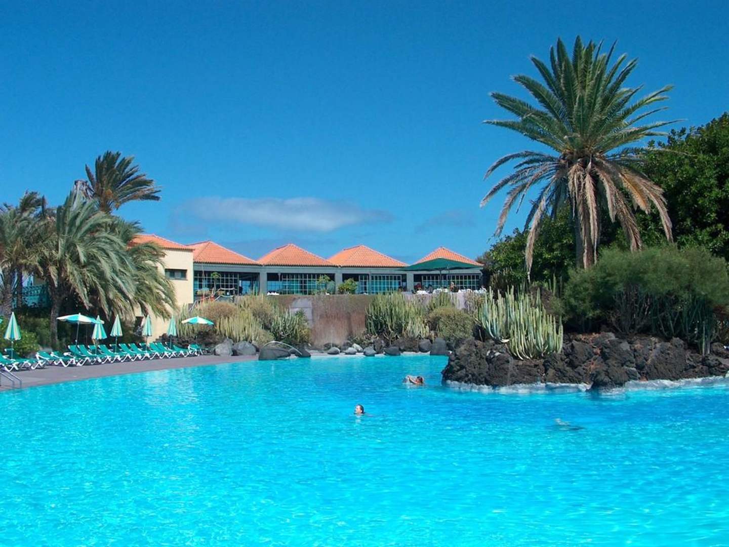 Meerwasserpool, im Hintergrund das Restaurant