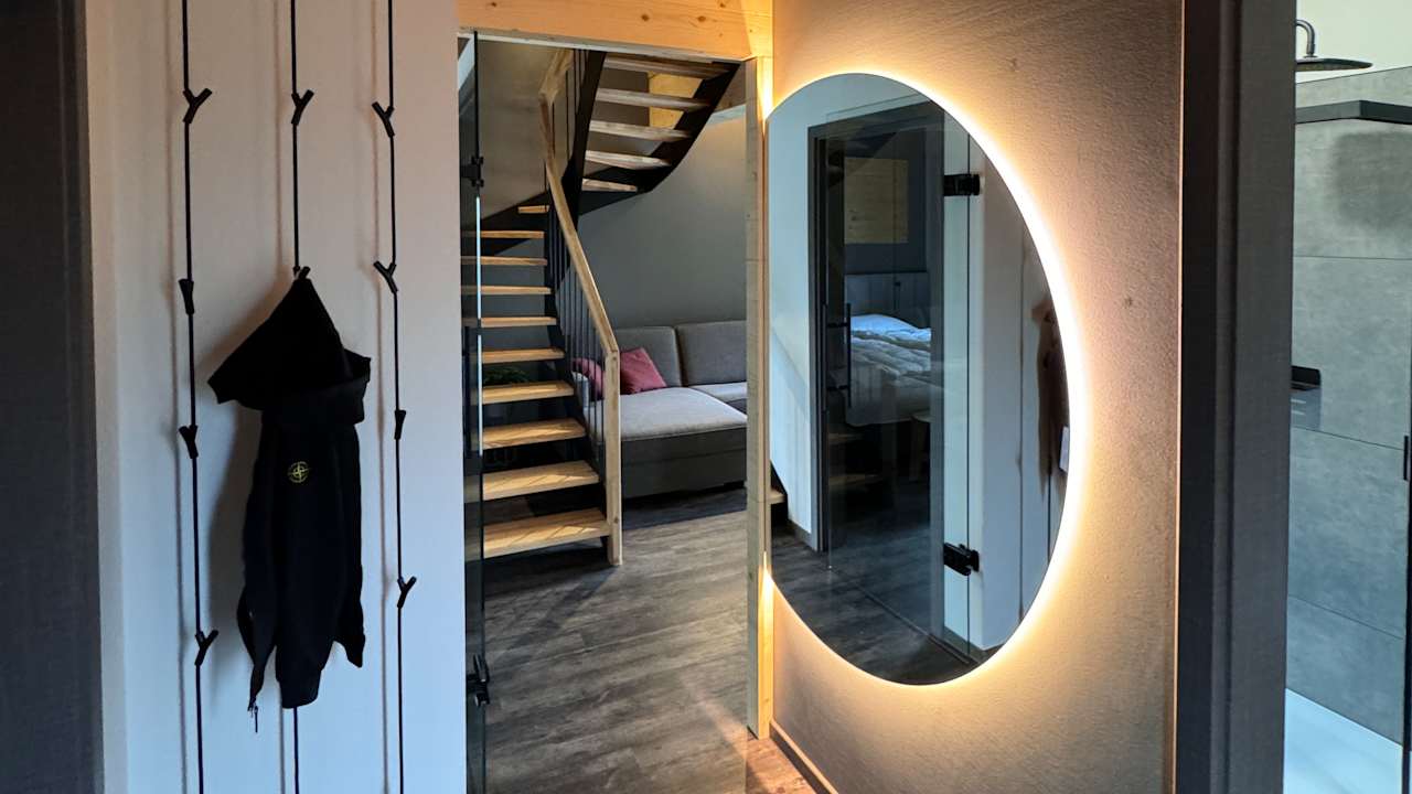 Flurbereich mit großem Spiegel und Garderobe