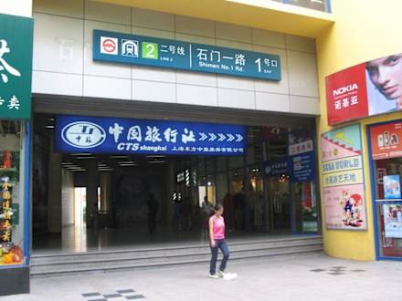 Die U-Bahnstation Shimen der Linie 2 ist etwa 5 Gehminuten vom Hotel entfernt. Von dort ist man nach wenigen Stationen auf dem People's Place.