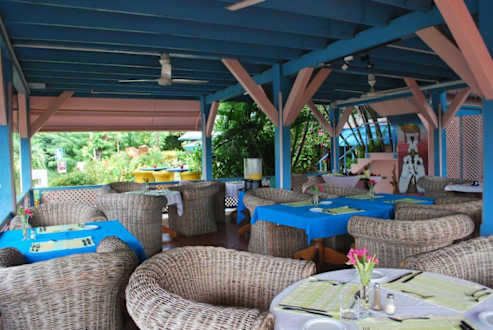 Großes FreiluftrestaurantDie dicken Korbsessel sind nicht sehr bequem, dafür aber sehr dekorativ