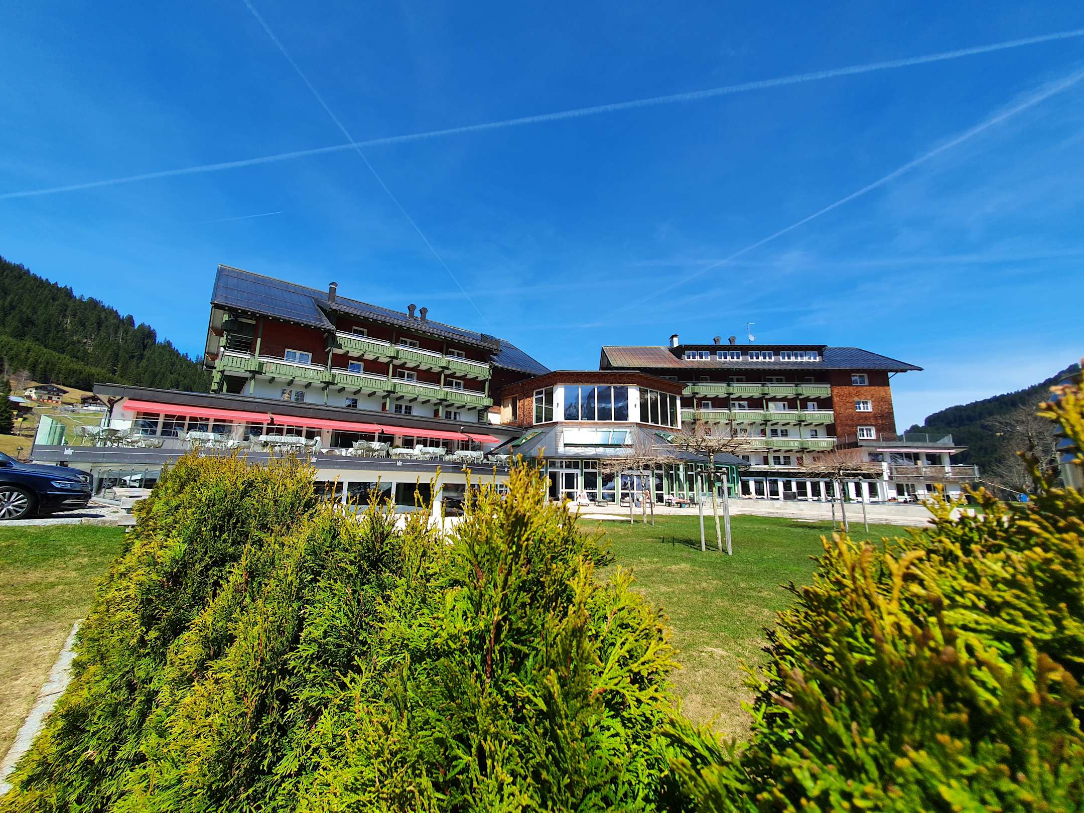 Hotelansicht vom Garten.