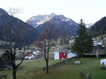 Schöne AussichtBild zeigt die Aussicht vom Balkon der Landhaus Suite im 1. Stock zur Garten- und Bergseite