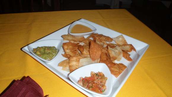 lecker Nachos im mex. Restaurant mit 3 Dips