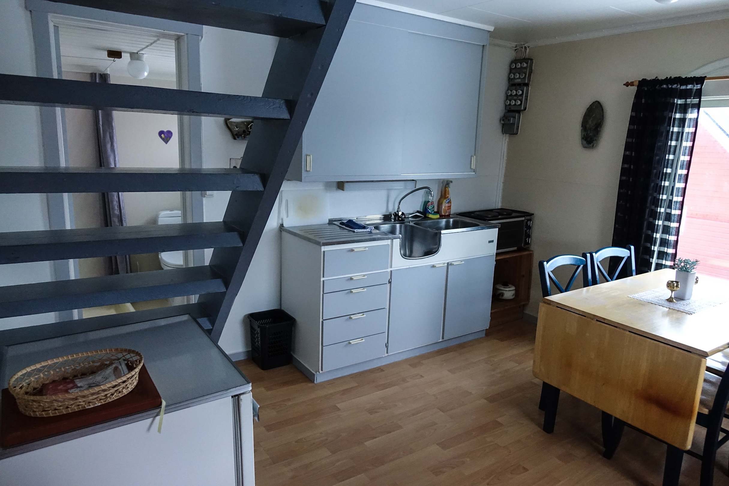 Der Wohnraum mit Treppe zum Schlafzimmer