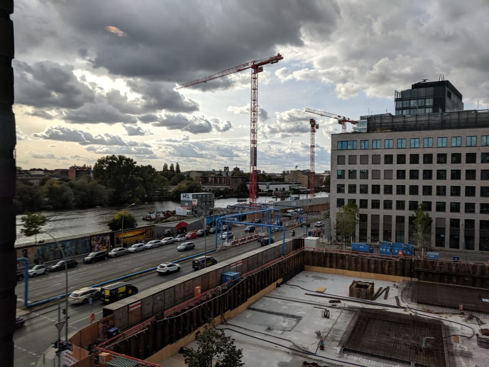 Blick aus dem Zimmer auf die Spree und die Nachbarbaustelle
