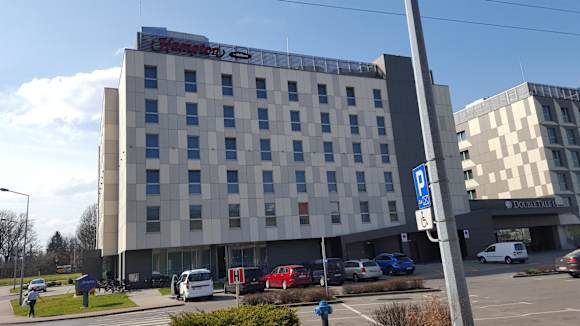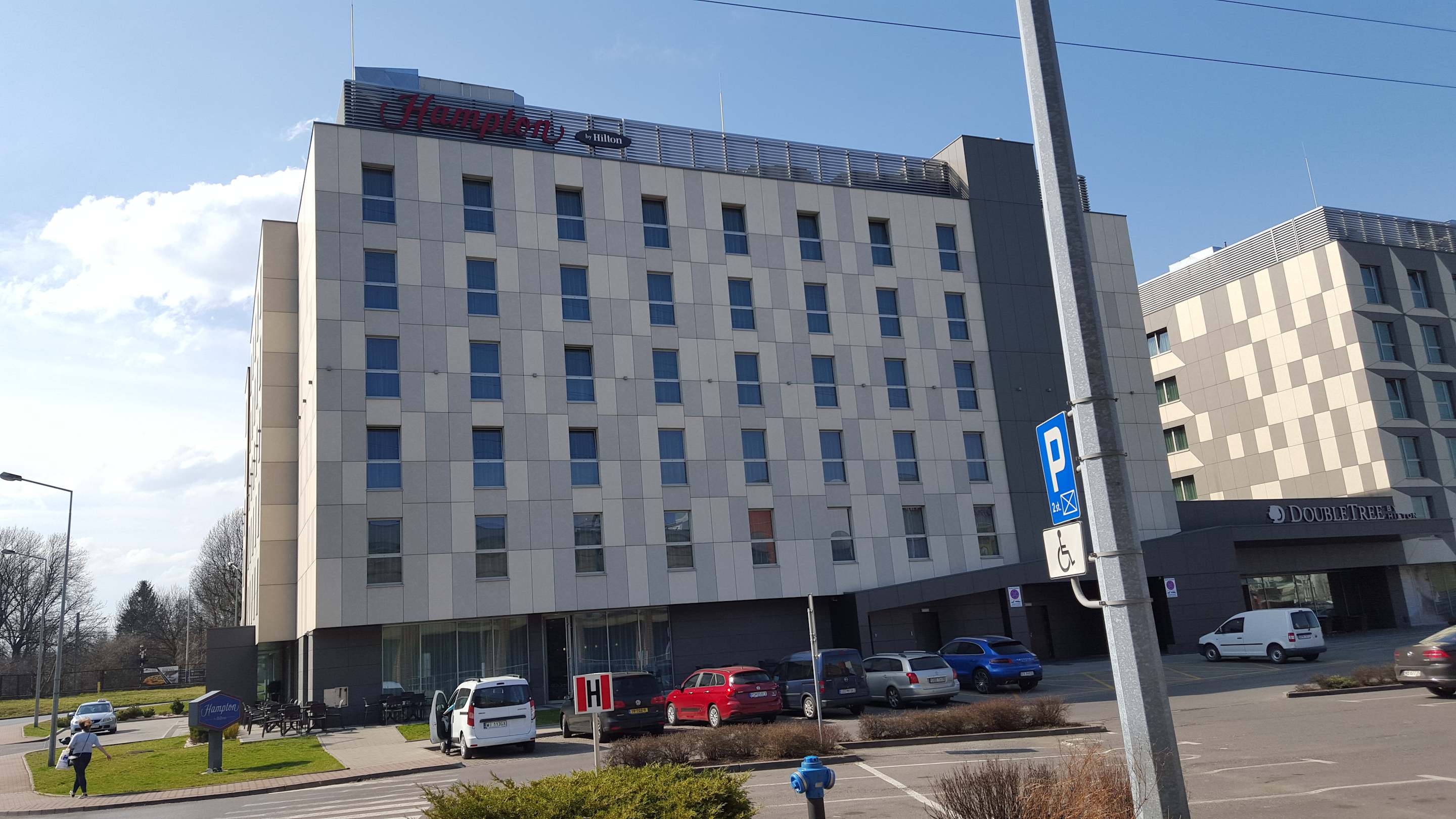 AußenansichtHotelgebäude vom Parkplatz des Shopping Centers aus gesehen. Direkt nebenan ist auch das Doubletree Hotel.