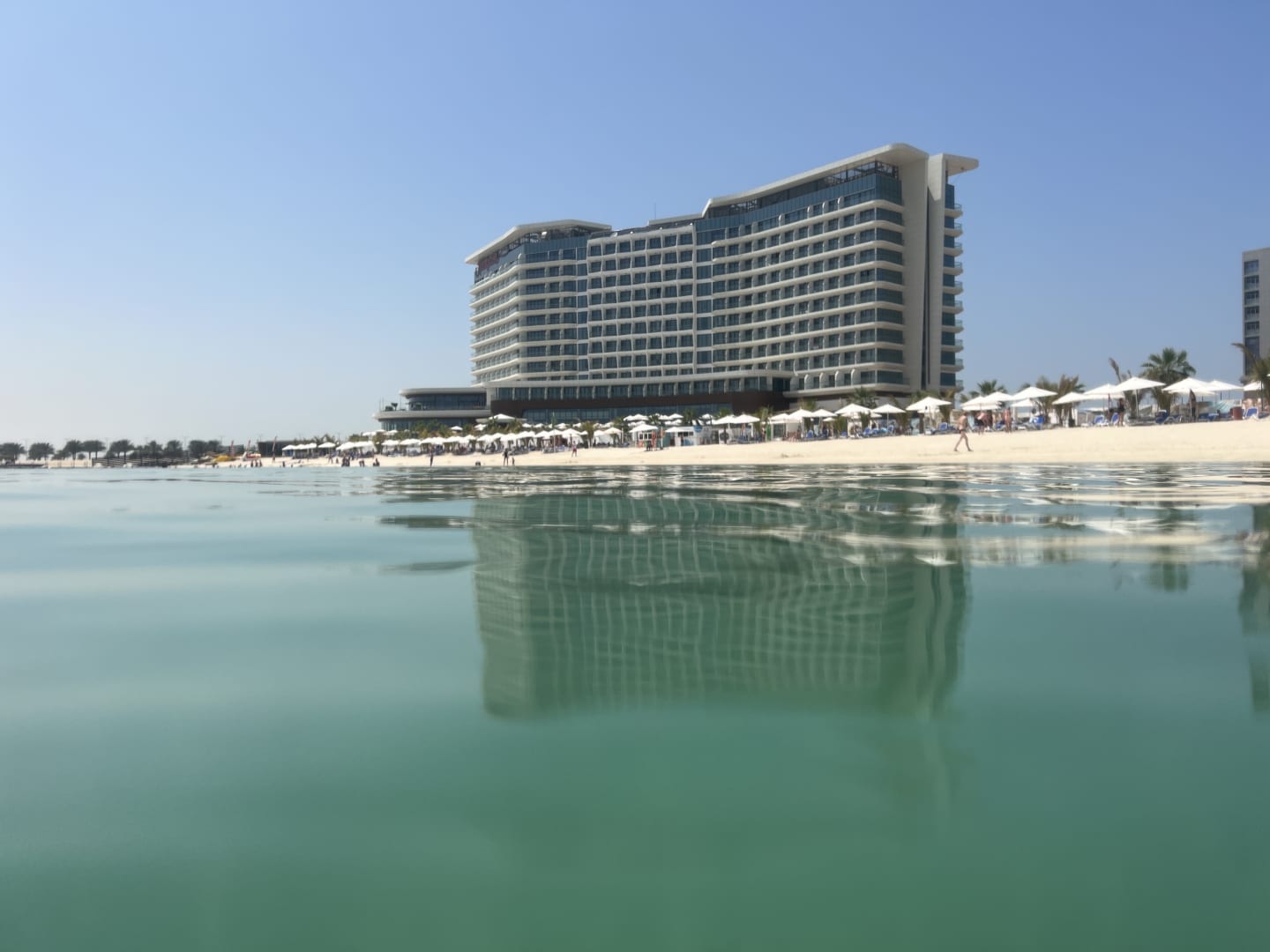 StrandHotel und Strand von Wasser aus