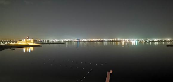 Ausblick aus der 6. Etage auf den Strand bei Nacht.