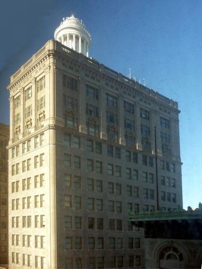 Blick aus dem FensterDer Blick aus dem Fenster geht nach links auf das Hochhaus mit dem Säulentürmchen (Orientierung aus dem Frenchquarter).