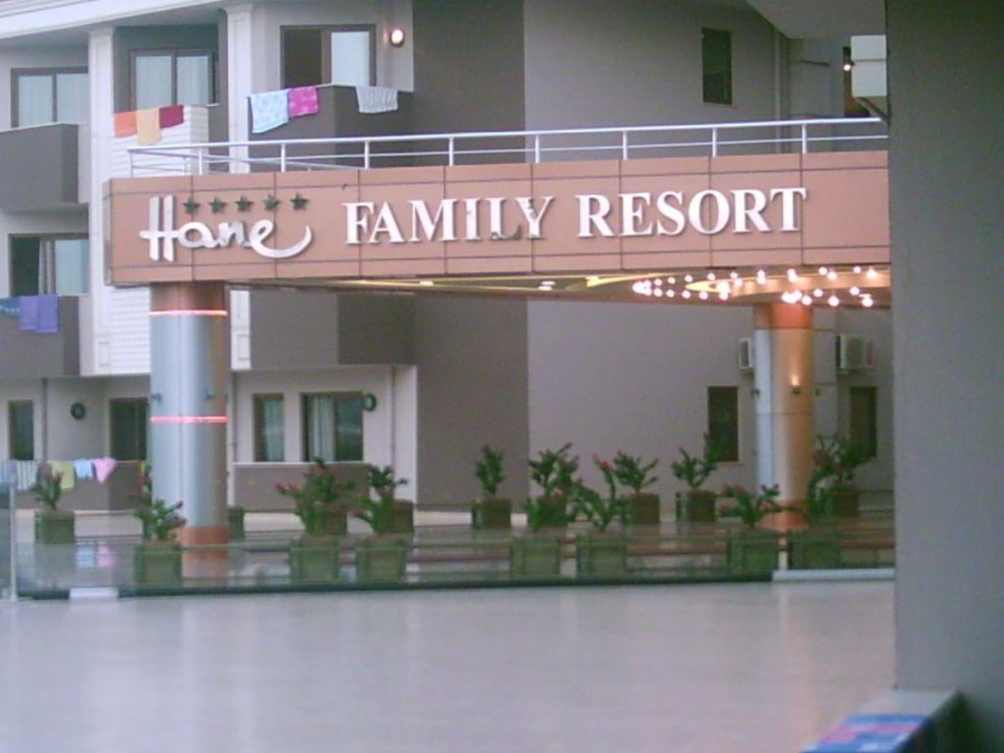 Am Eingang von Hotel Family Hane.