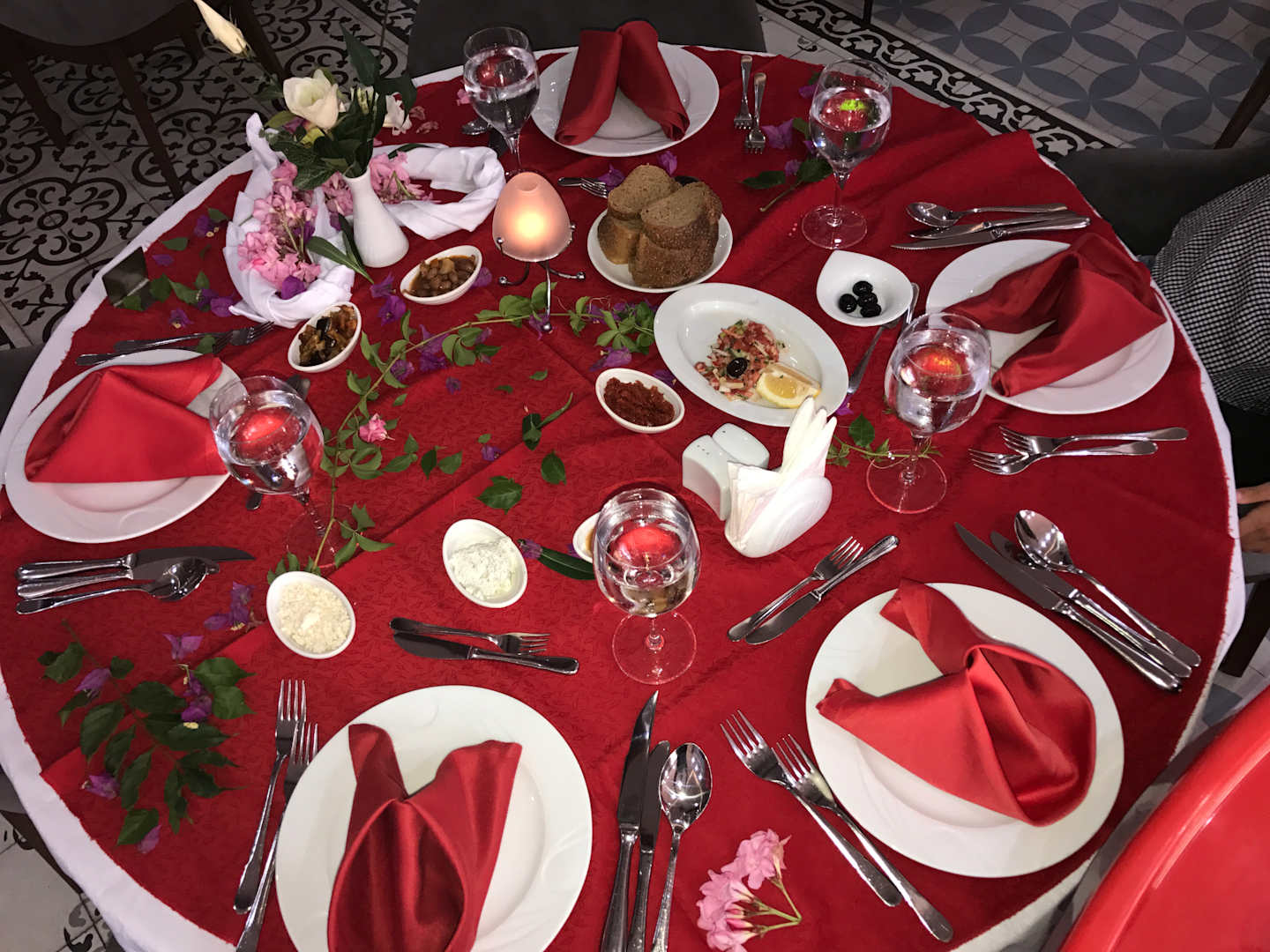 Unser Tisch im Restaurant. Hinzu kam ein vollzügliches 4 Gänge Menü, serviert von dem lieben Osman, der wirklich seine Arbeit voller Liebe ausübt.