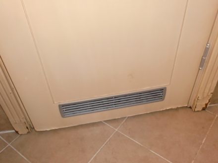 Tür im Badezimmer unten kaputt wegen Feuchtigkeit