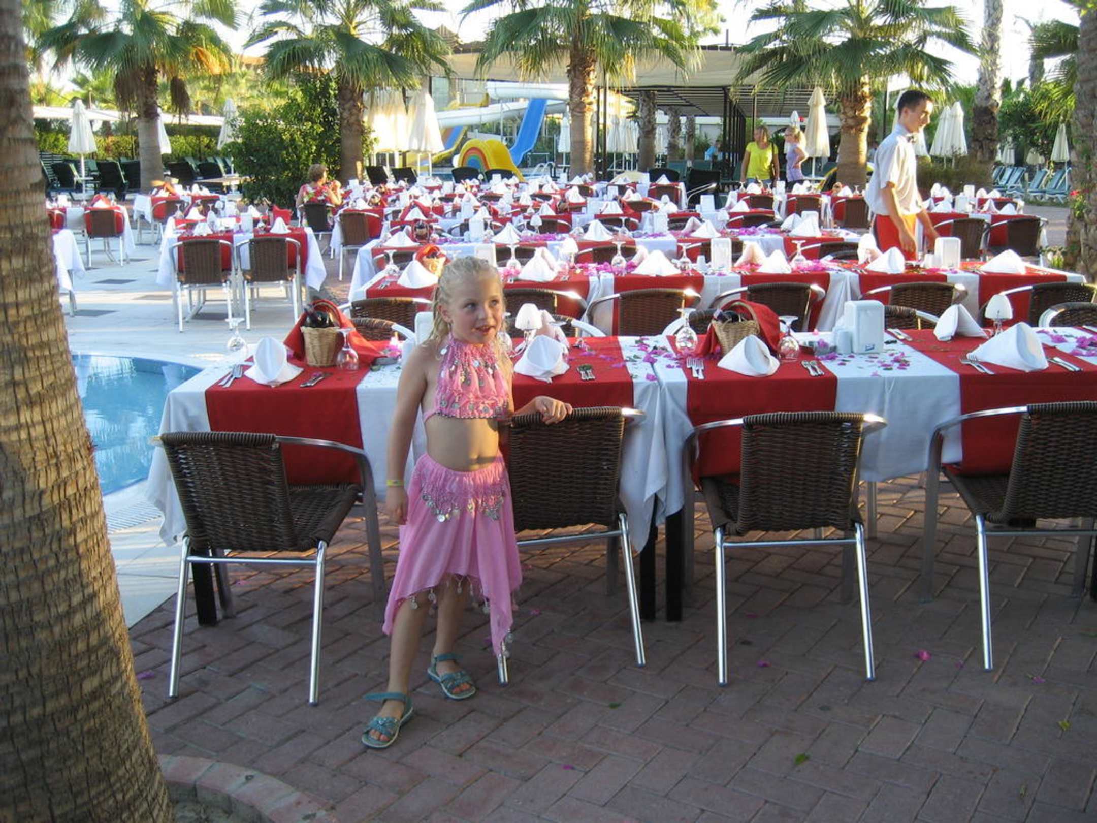 Die Tische vom Galadinnner am Pool.