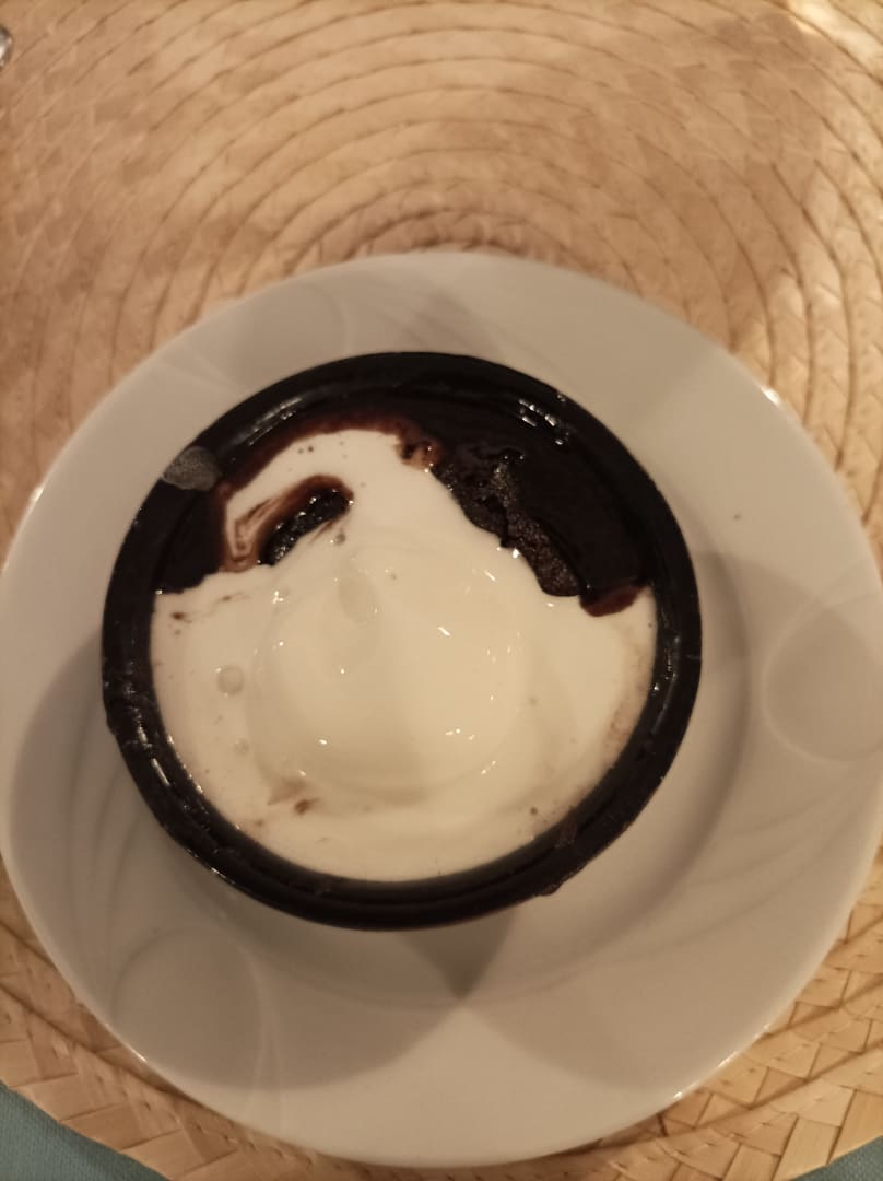 Ein Traum. Warmes Schokosoufle mit flüssigem Schokokern. Dazu Vanilleeis