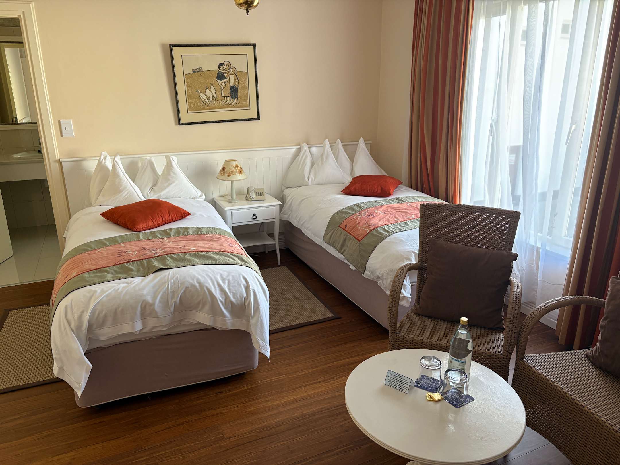 ZimmerKolonialstil, den man mögen muss. Ich fands aber mehr als passend, die Betten sind ausreichend bequem. Sehr sauberes Bad.