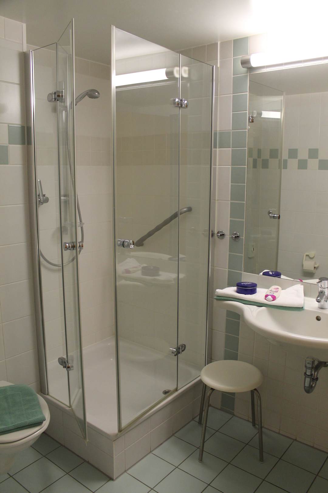 Diese Aufnahme eines Ausschnitts vom Badezimmer des Einzimmerappartements 5209 im Hapimag Binz habe ich an meinem Anreisetag, dem 15. September 2012 abends, gemacht.