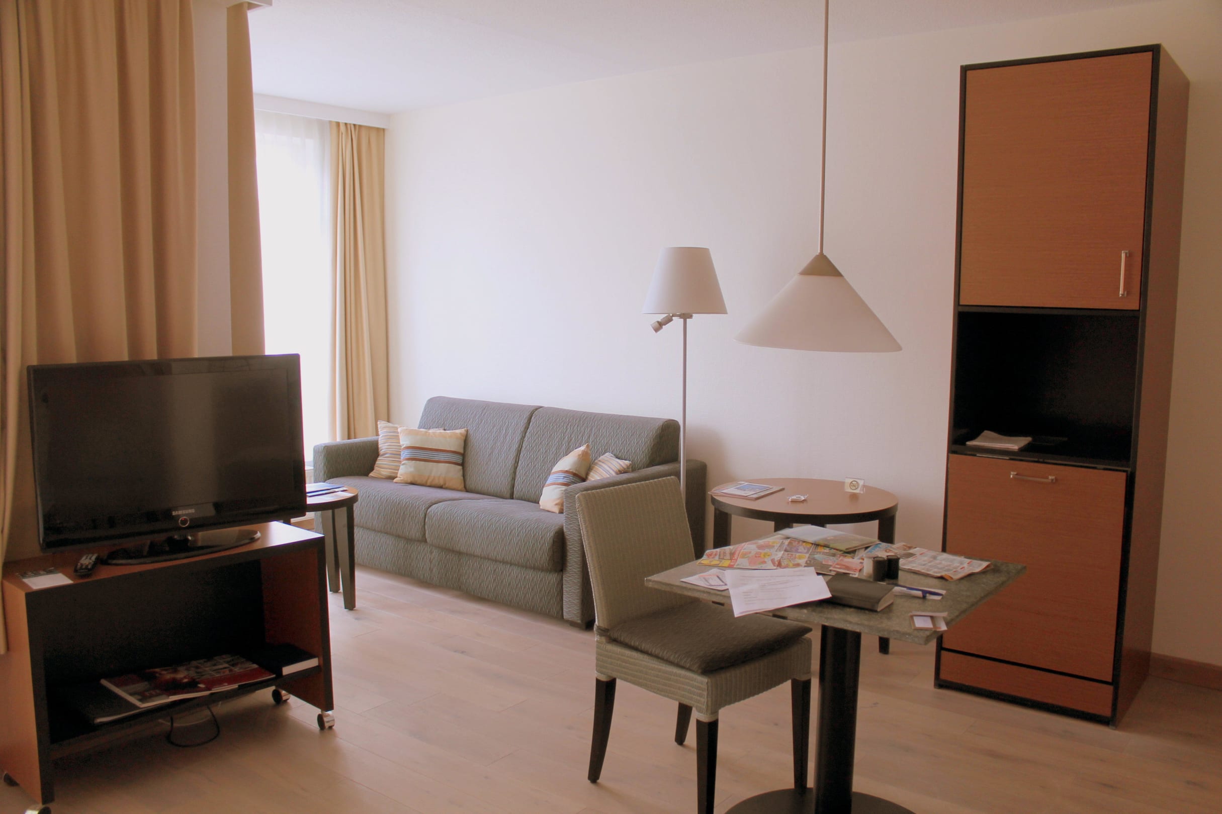 Diese Aufnahme vom Wohnbereich im Einzimmerappartement 5209 von Hapimag Binz habe ich am 16. September 2012 nachmittags gemacht.