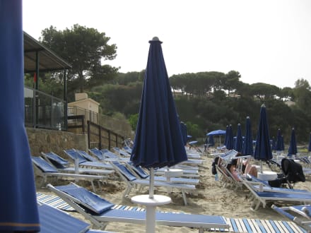 Der Strand war schon mit Liegen bestückt