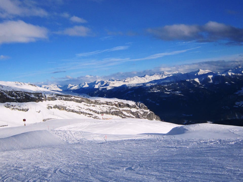 Abfahrt von La Siala mit den Bündner Alpen