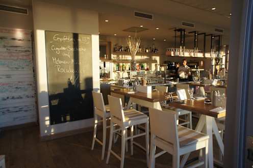 Diese Aufnahme zeigt einen Blick von außen ins Restaurant "Breizh" oben auf dem "Dünenwall" vor dem Weststrand von Hörnum