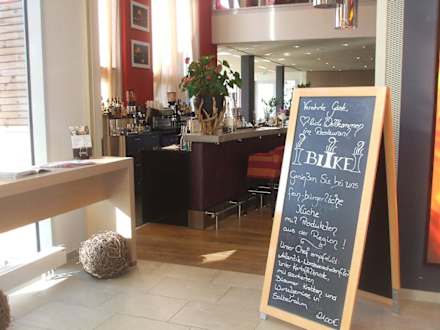 Diese Aufnahme zeigt den Eingang zum Restaurant "Biike" und einen Ausschnitt der Bar im Hapimag Resort Hörnum