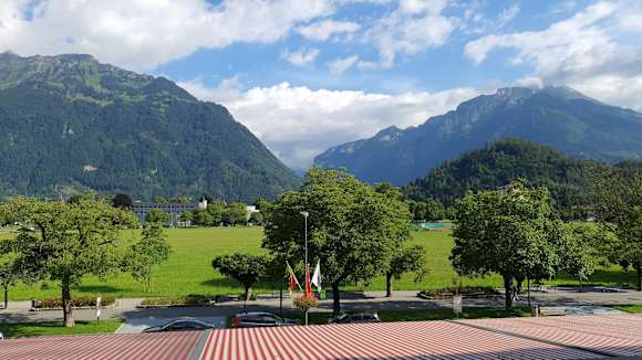 Ausblick von unserem Balkon zum Jungfraumassiv (hier leider in den Wolken ...)