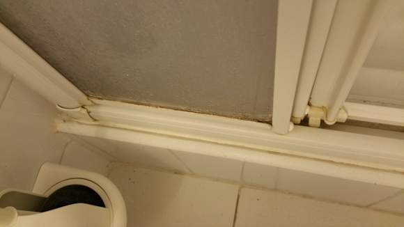 ZimmerVerschimmelte und verkalkte Duschkabine
