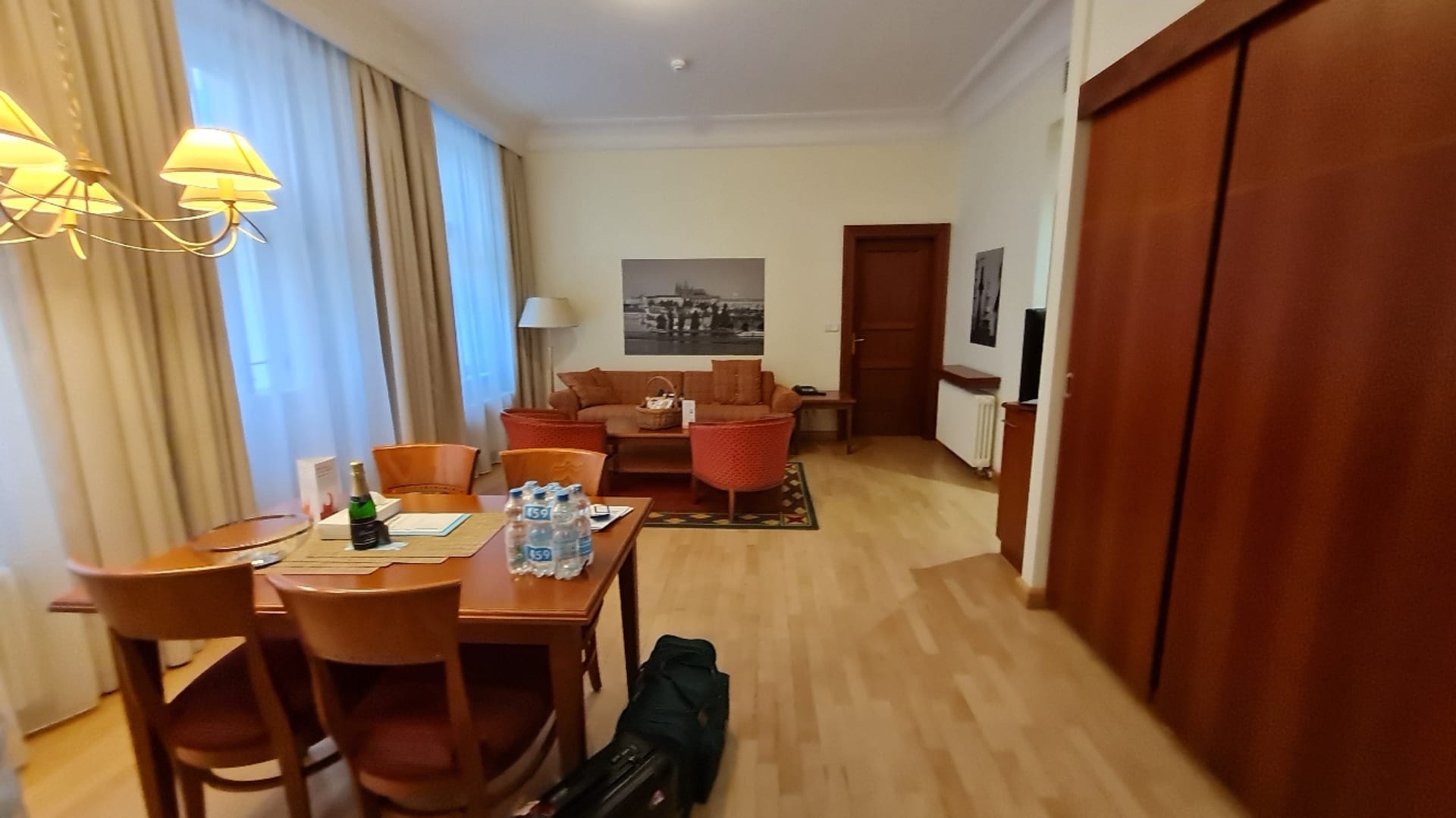 Essbereich und Wohnzimmer, rechts großer Schiebetürenschrank