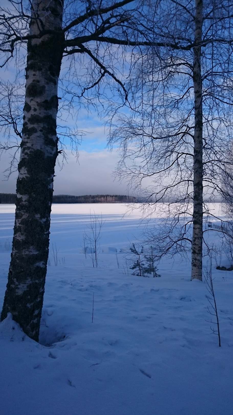 Blick von der Hüttenzufahrt auf den See sehr früh am Morgen. Schönes Morgenlicht!