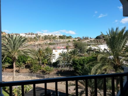 Der Ausblick vom Balkon Richtung Pool