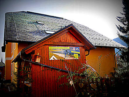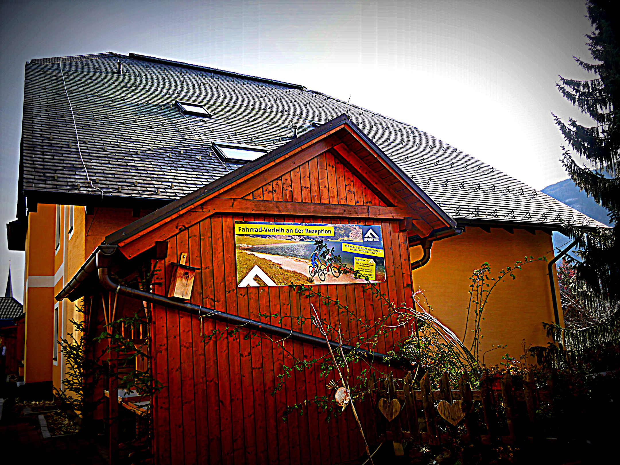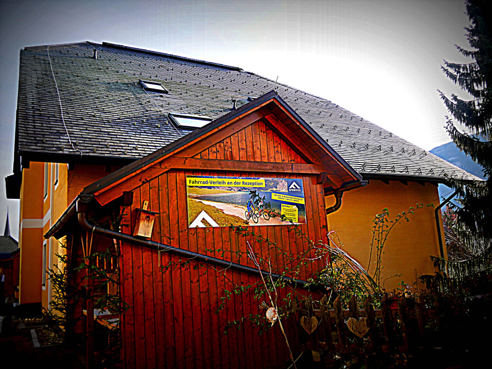 Außenansicht eines Schuppens im Resort