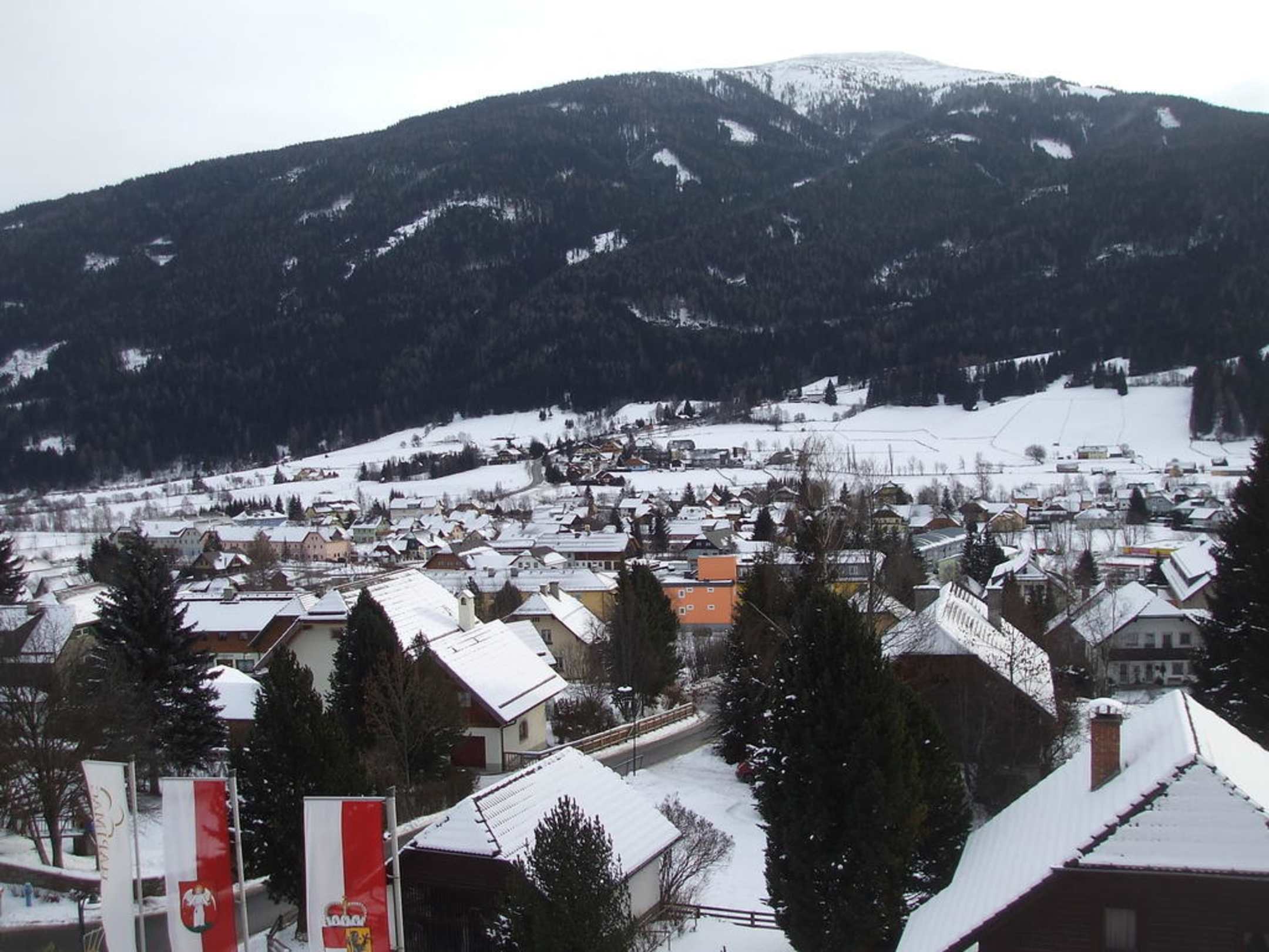 Diesen Blick über Sankt Michael hinweg zum Aineck habe ich am Nachmittag des 11. Dezember 2010 vom Balkon aus von Appartement 832 im Hapimag Sankt Michael mit der Kamera festgehalten.