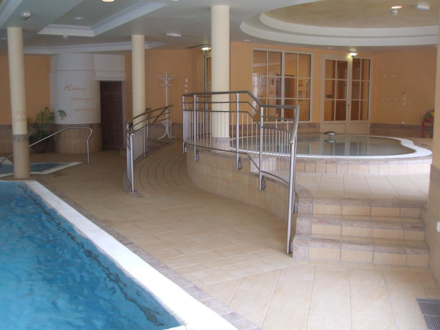 Schwimmbad im Hapimag Sankt MichaelDieser Ausschnitt vom Schwimmbad im Hapimag Sankt Michael zeigt gerade noch ein Stück vom Schwimmerbecken links und im Hintergrund das Kinderplanschbecken.