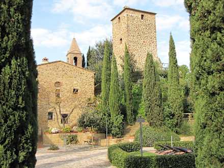 Blick auf Turm und Kirche