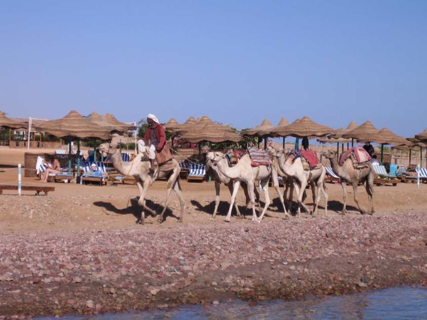 Kamele am Hotel-Strand