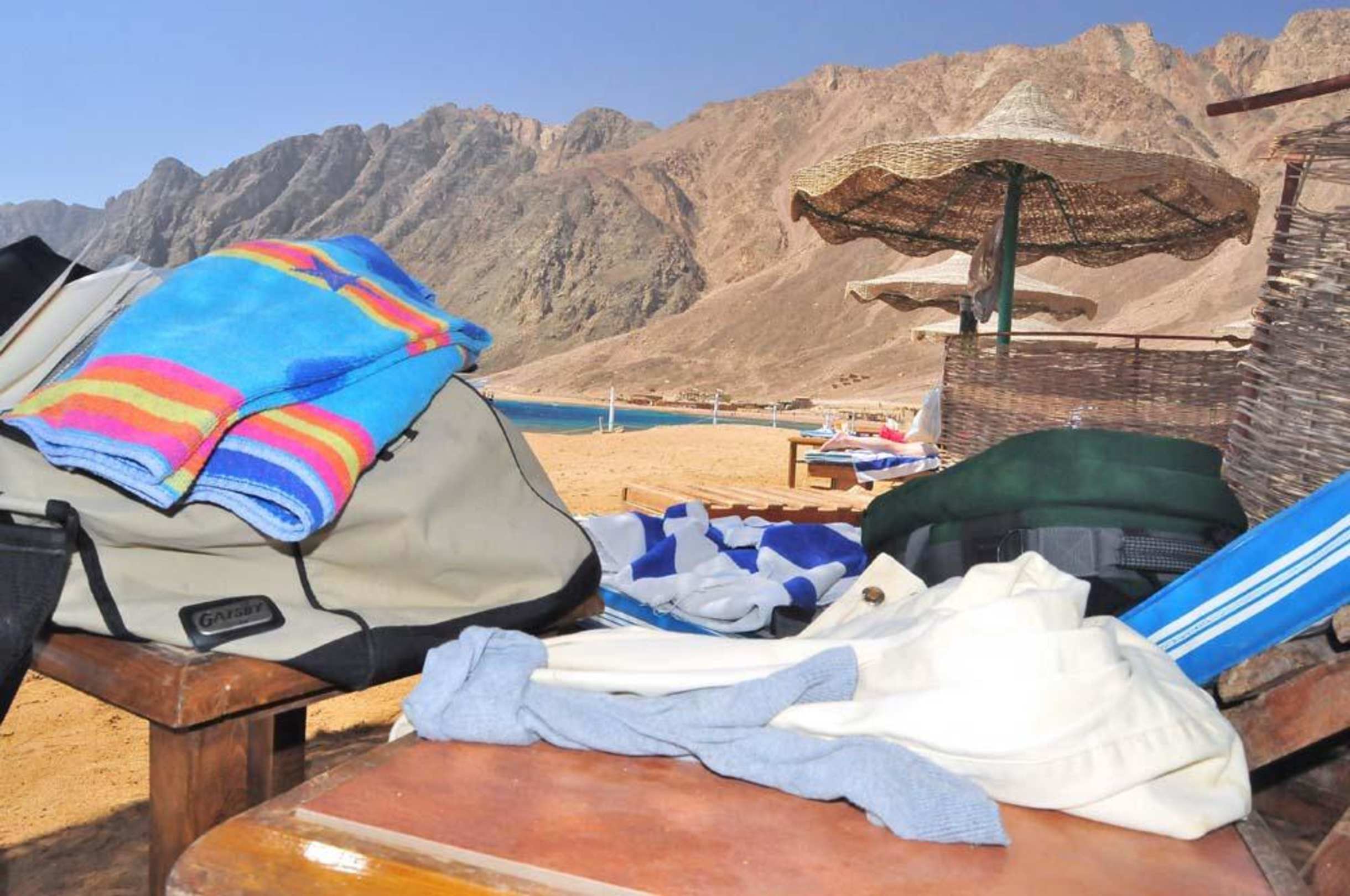 Blick vom Strand auf die Bergwelt direkt daneben