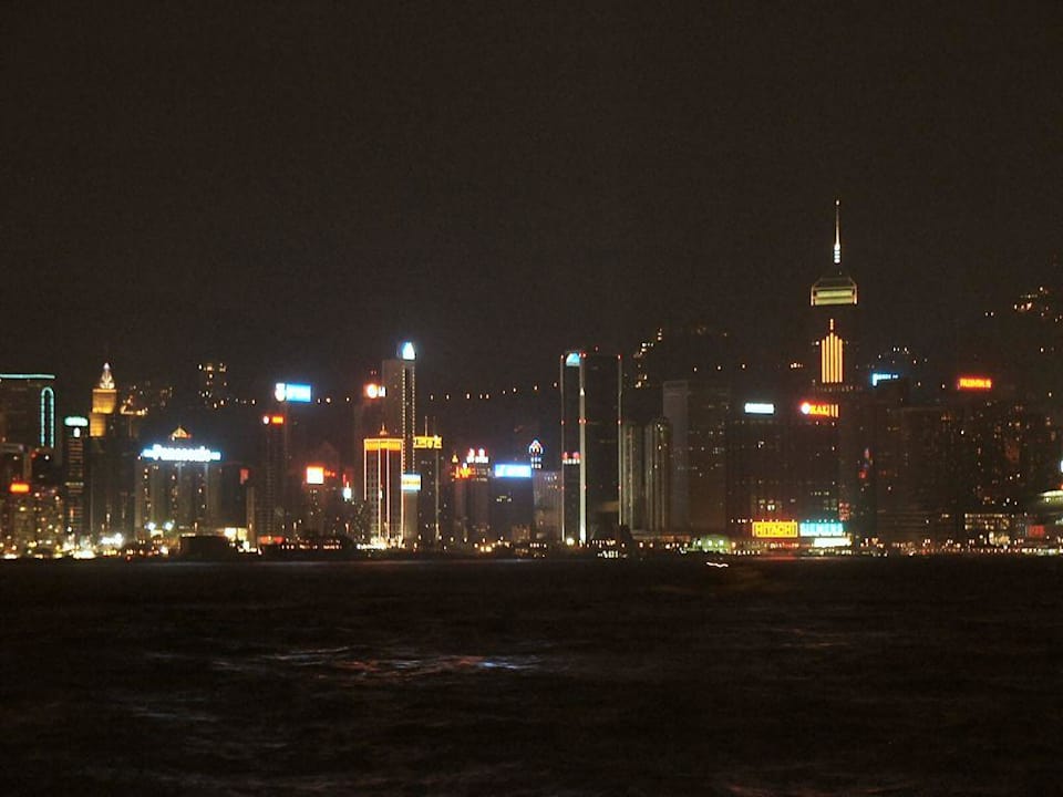 Blick vom Harbour Plaza auf die Skyline von HKKBlick vom Harbour Plaza auf die Skyline von HKK Island bei Nacht