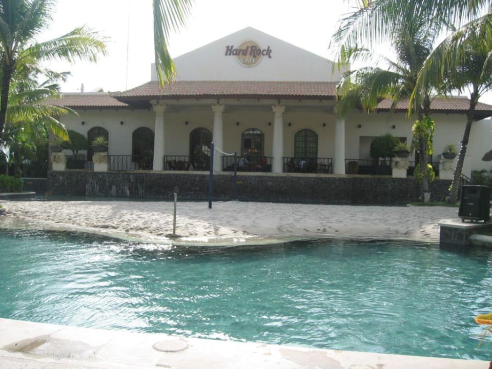 das Beachvolleyballfeld mitten im Pool