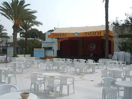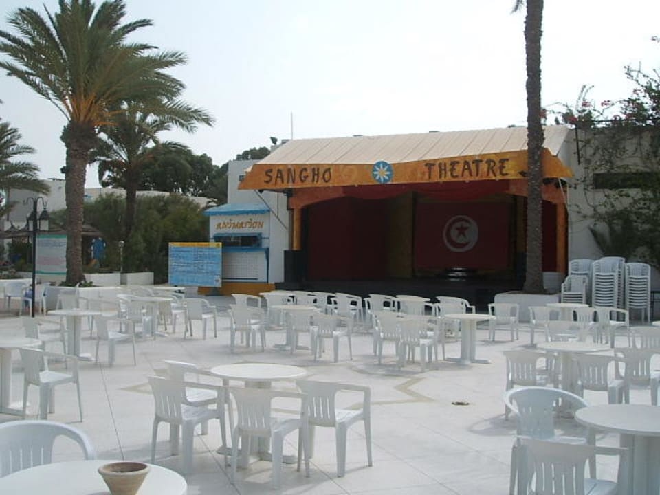 Aufführungsbühne der Animationen und Kinderdisco am Abend