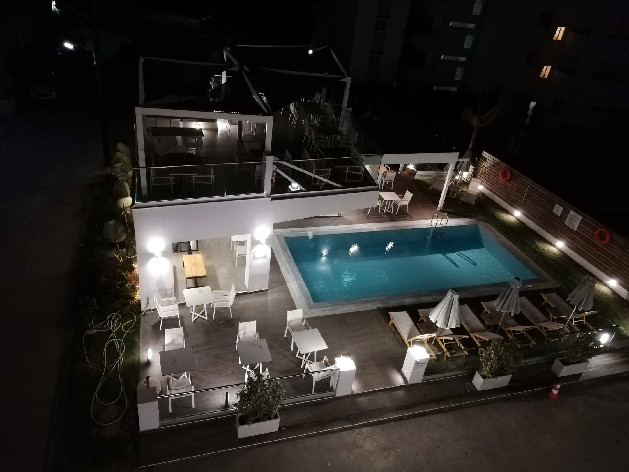 Über die Straße zum Pool
