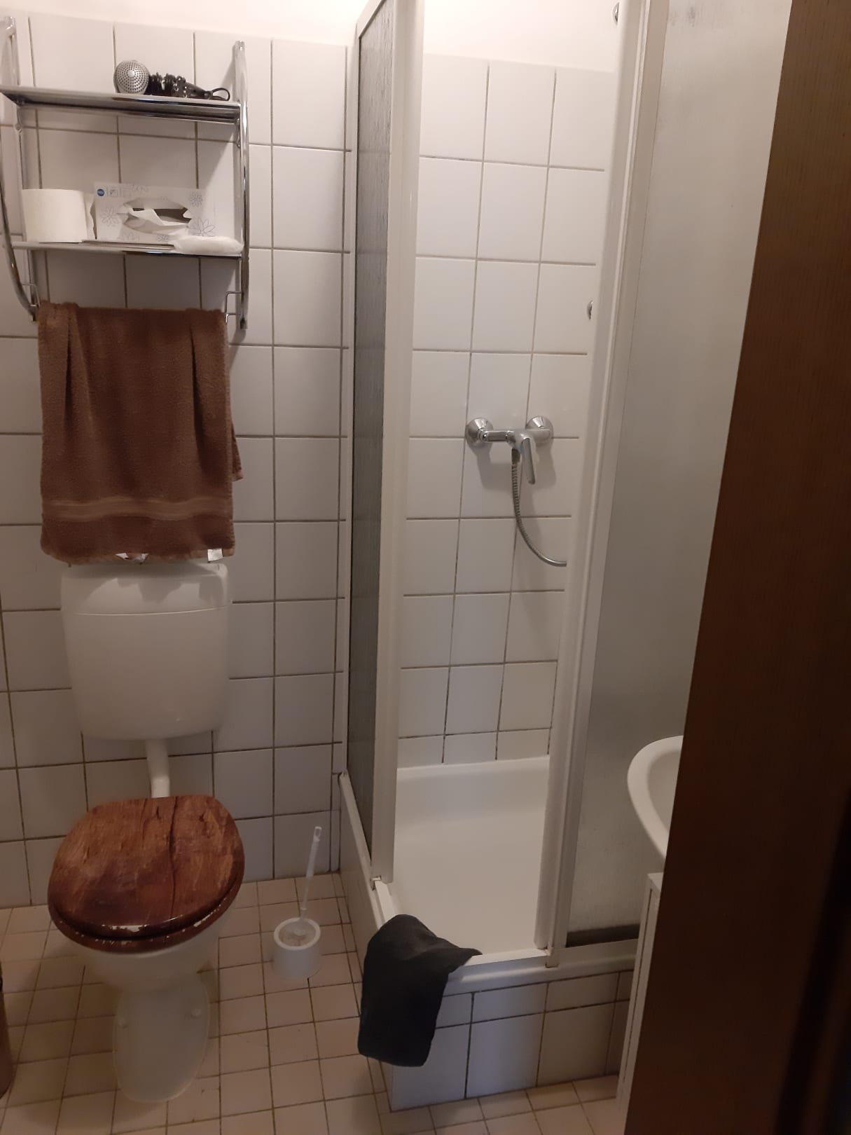 Die Dusche in der man nur einen 31 cm breiten Einstig hatte .