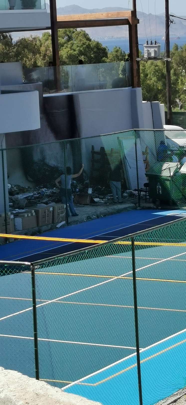 Ausblick aus unserem Swim-up-Zimmer auf den Brand in der Müllstation am 2.6.2019 um 14.43 Uhr. Die Hotelmitarbeiter hatten mit großem persönlichen, ja heldenhaften Einsatz gelöscht. Meine Anerkennung!
