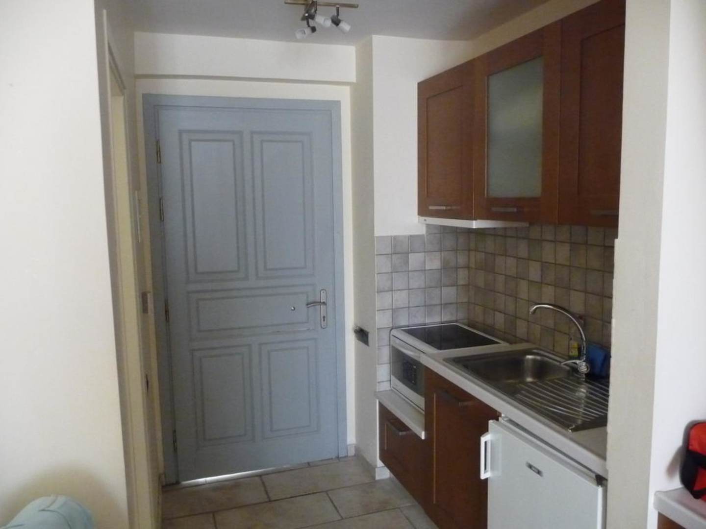 Eingangstür und Küche von Kyveli Apartment
