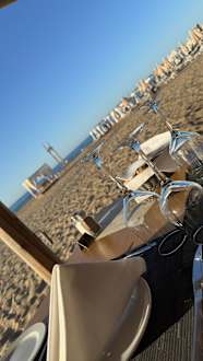 Gedeckter Tisch zum BBQ-Abend mit Blick auf den Strand und die Bali-Betten